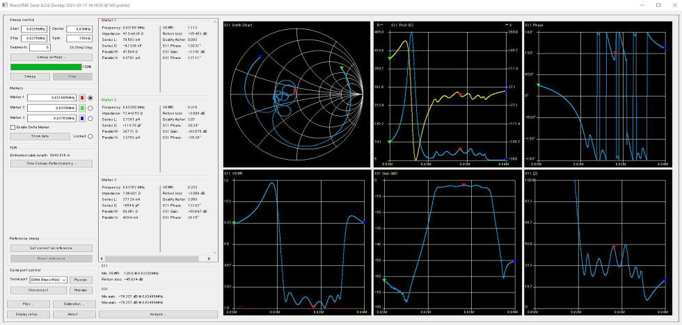 nanoVNAは本体1万円もしないお手軽な製品ですがアンテナのインピーダンス解析から高周波のフィルター特性まで測られ、優れた