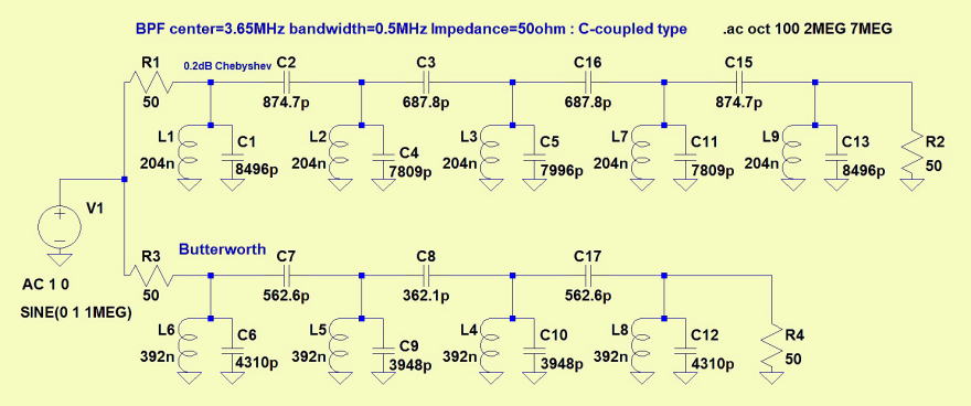 HF帯においては数uH程度の比較的値の大きなインダクターを扱うBPFです。バターワース型は偶数次も入出力の