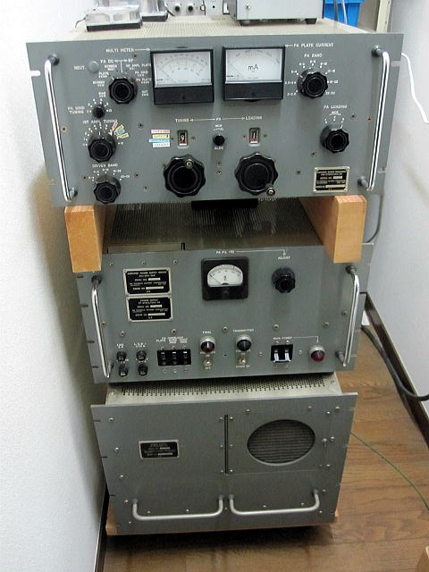 現用リニアーアンプ、かつてのアメリカ軍用送信機です。RFデッキの2つの角形メーターは新規に発注したものです。