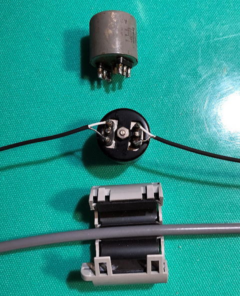 もので、それならばと、同軸ケーブルのあちこに、さらにACケーブルやマイクコードのあちこちにパッチンコアーを挟んで